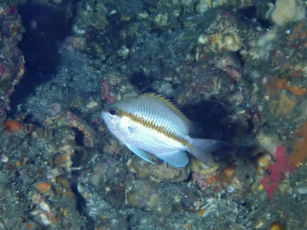ハナダイの幼魚に混ざって泳いでいますが、個体数は少なくないのでトウカイスズメダイやオビトウカイスズメダイよりも見つけやすいです。