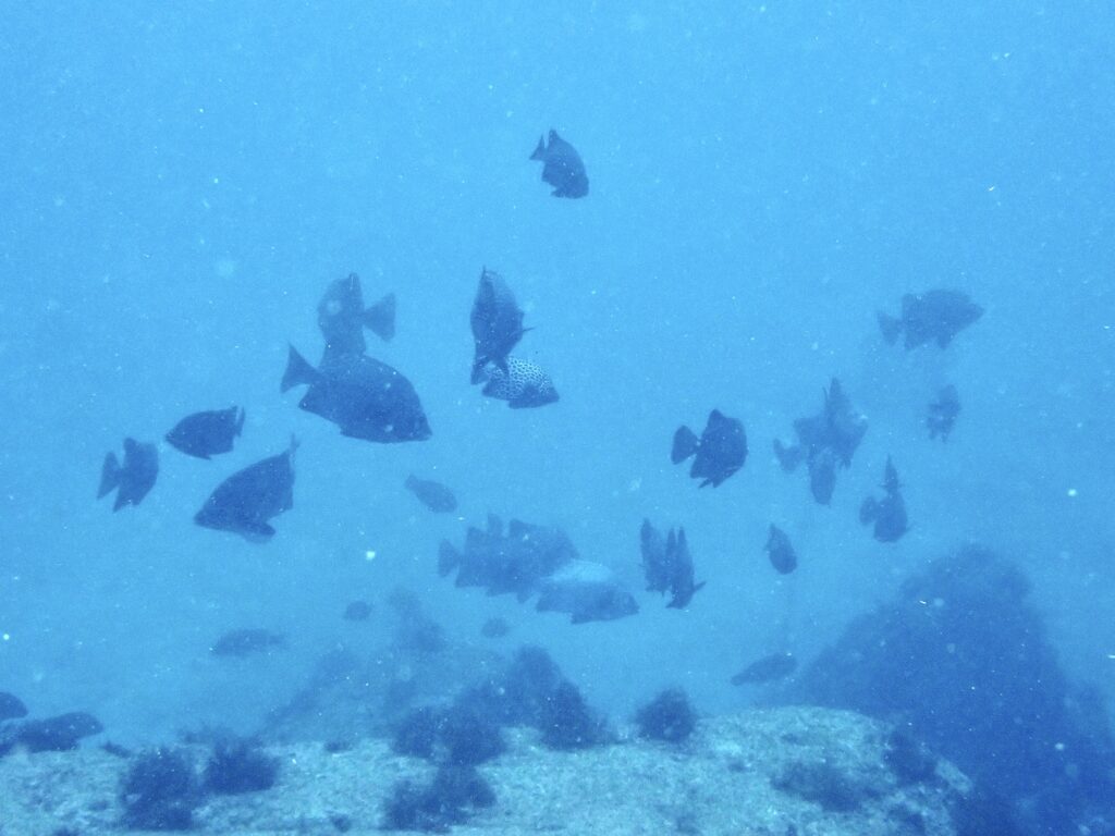 浅場に戻る途中、イシガキダイが30匹ほど群れて泳いでいました。