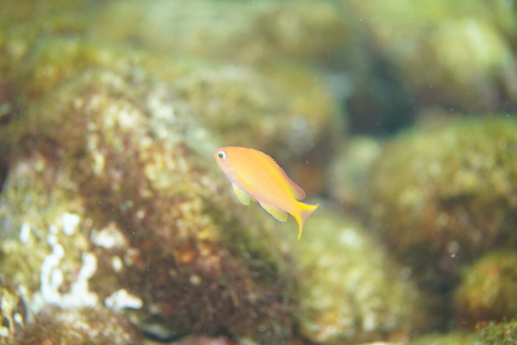 被写体に目一杯近づけるなら良いのですが、ハナダイなど動きの速い魚や警戒心の強い魚に対しては近づくのが難しいことが多いです。