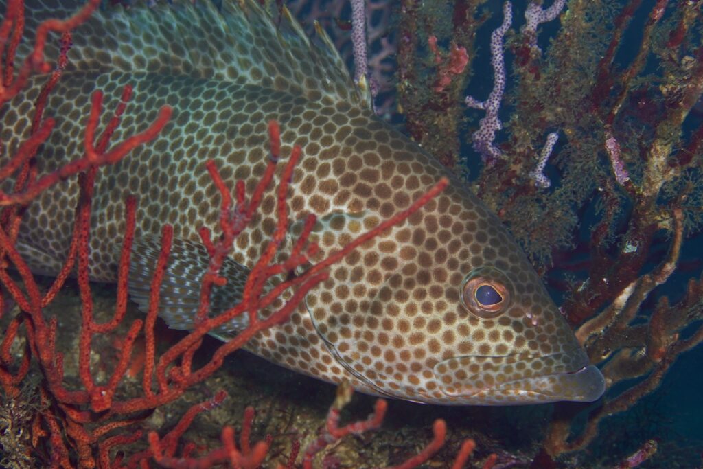 伊豆でよく見るのはこのオオモンハタとアカハタですが、ポイントによって割合が極端に偏っていることが多いです。