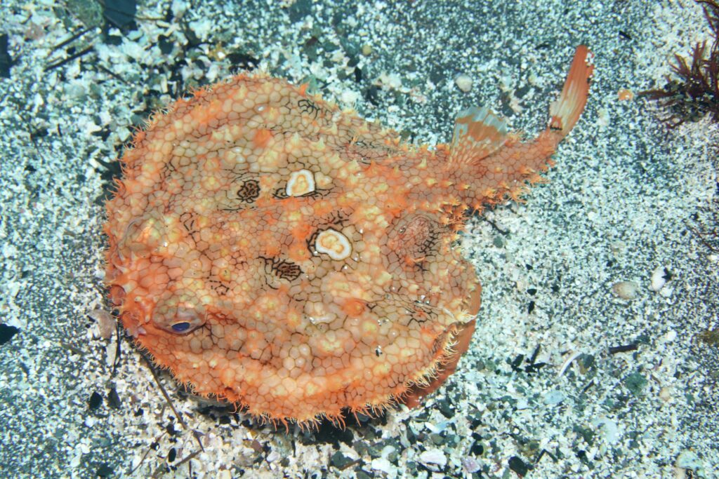 カエルアンコウを大きくして平べったくして毛を生やした感じ?