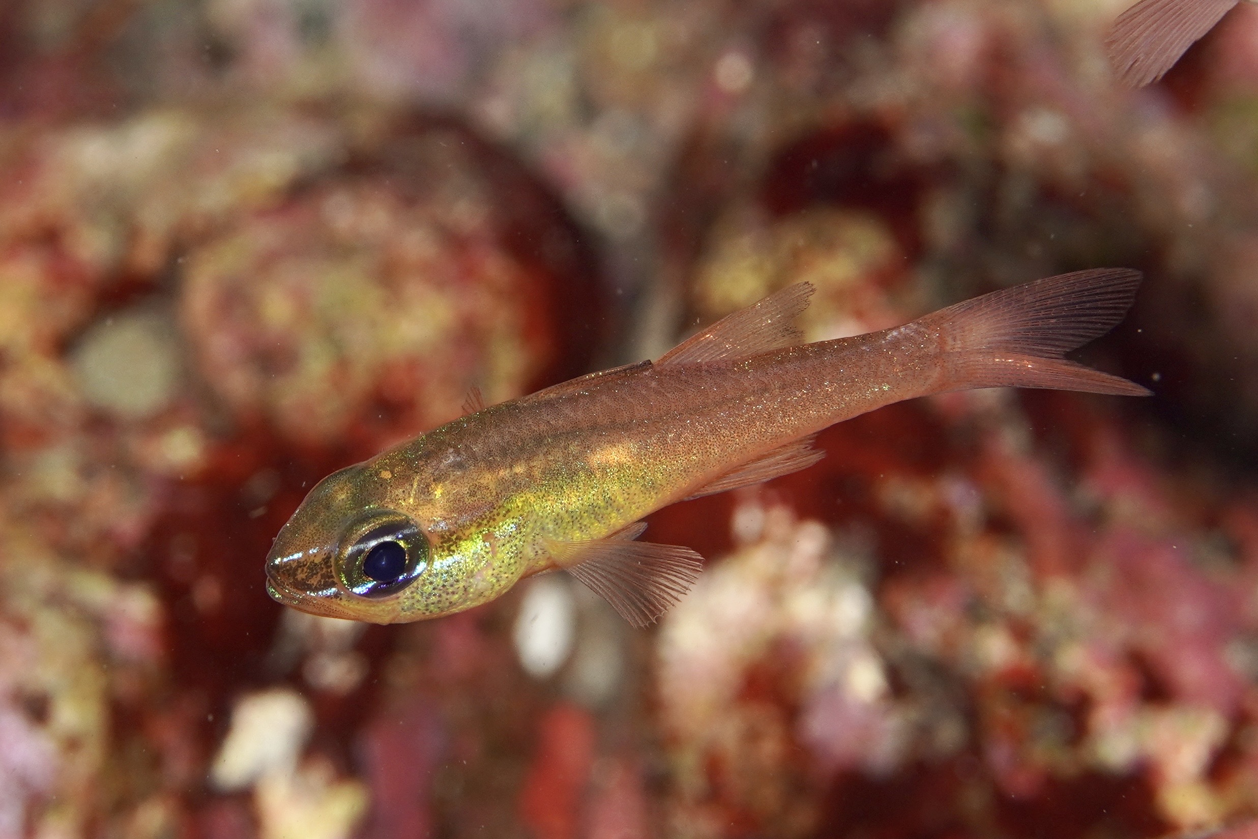 黄色とピンクのグラデーションが大変美しいテンジクダイです。