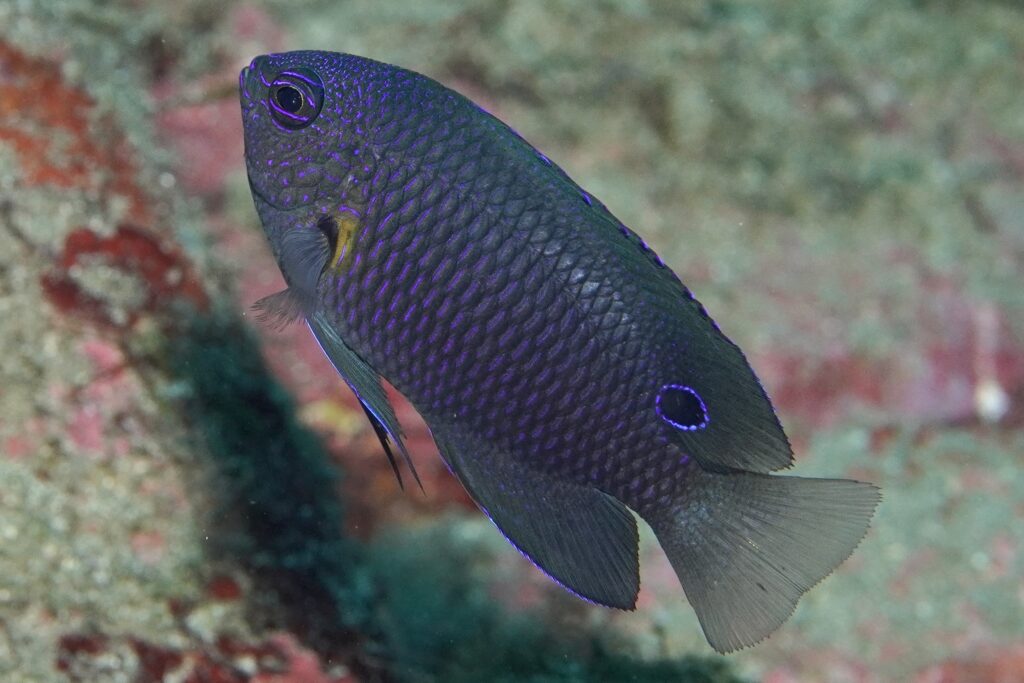 伊豆の色々なポイントで見られる普通種のスズメダイです。