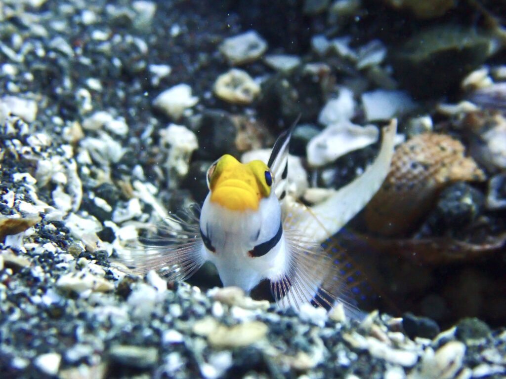 短いだけでなく丸みを帯びているイメージがあったため写真のハゼの存在に困惑しましたが、なんのことはない、オスは短い尖った背びれを持ち、メスは短い丸い背びれをしているだけでした。